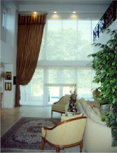 Picture Description Flat Roman Shade with Motorized Remote Control lift system